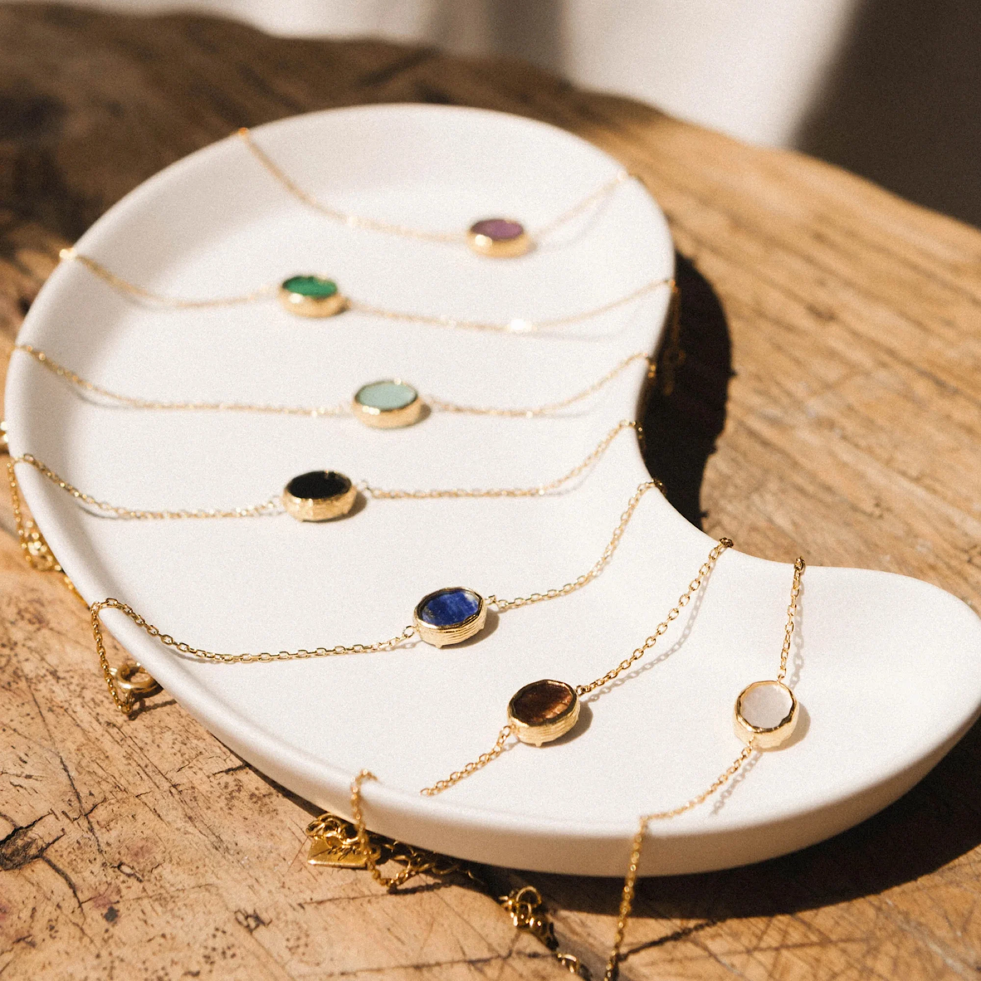 • Bijou en acier inoxydable doré à l’or fin 18 carats et véritables pierres naturelles